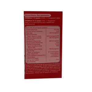 Ngoài sắt (5mg) và choline (153 mg), Multi Iron còn chứa 12 loại vitamin và khoáng chất thiết yếu khác cho trẻ gồm: